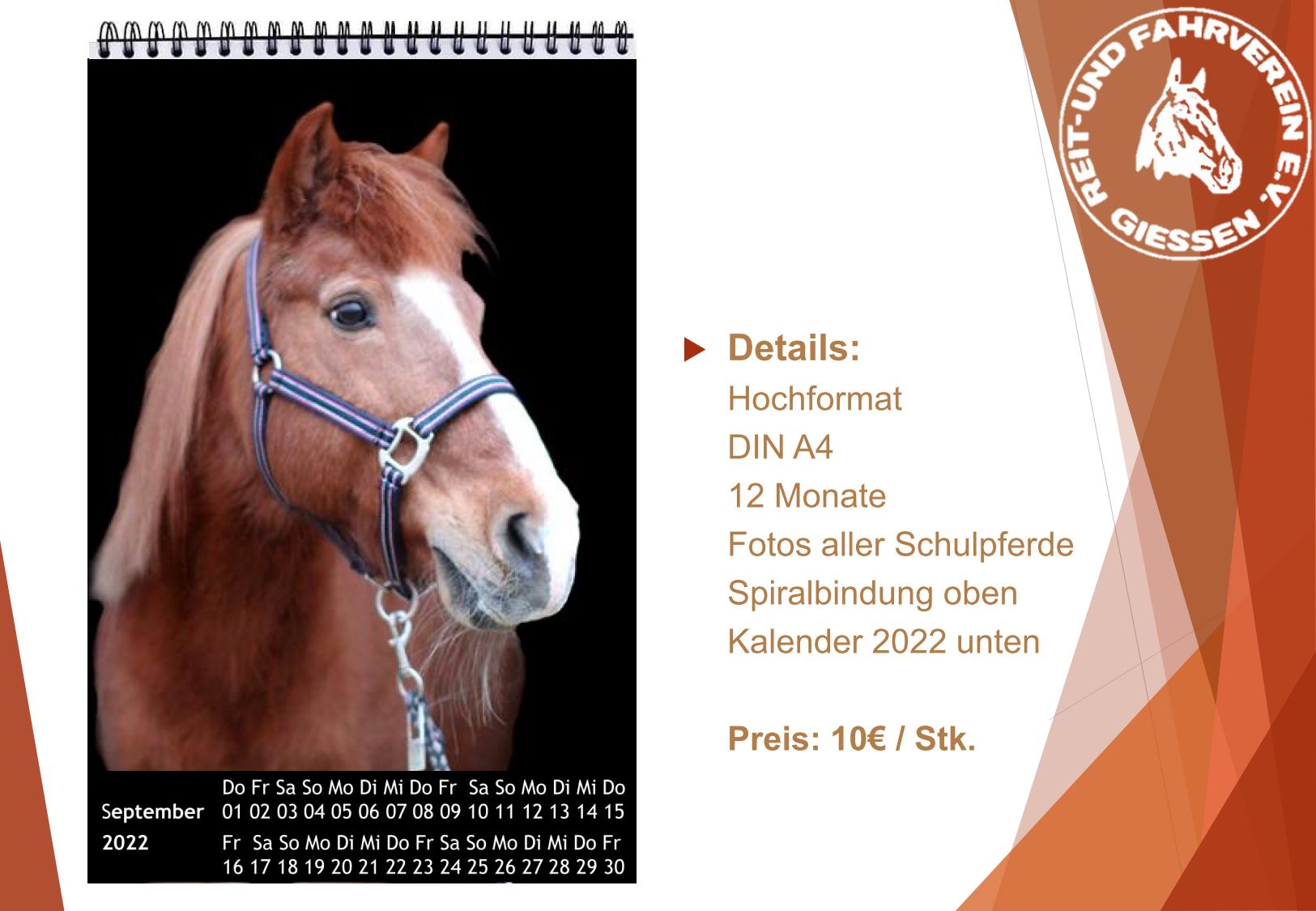 Es gibt für das kommende Jahr 2022 einen Wandkalender mit Fotos all unserer Schulpferde zu kaufen!
