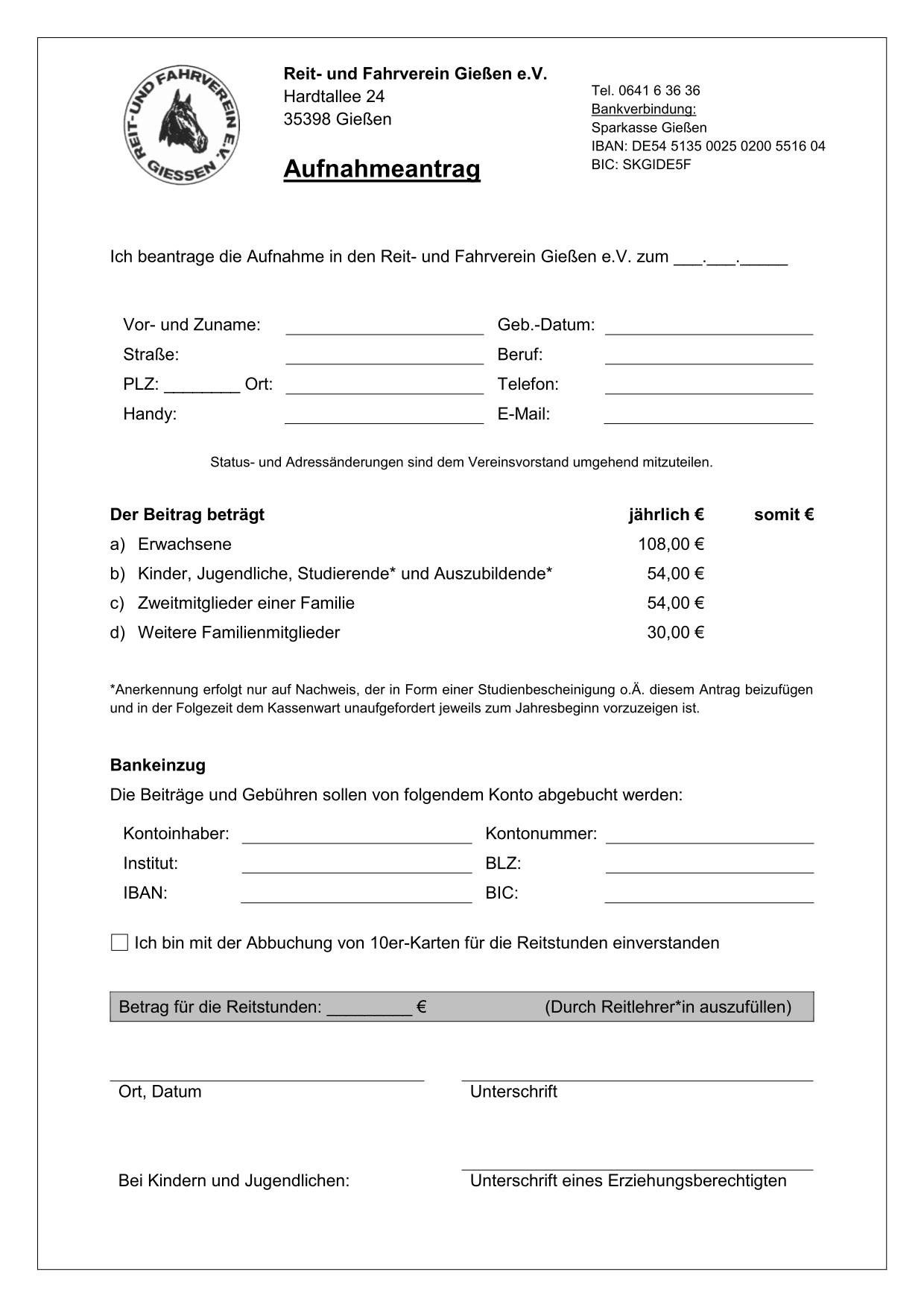 Mitgliedsantrag Vereinsmitgliedschaft