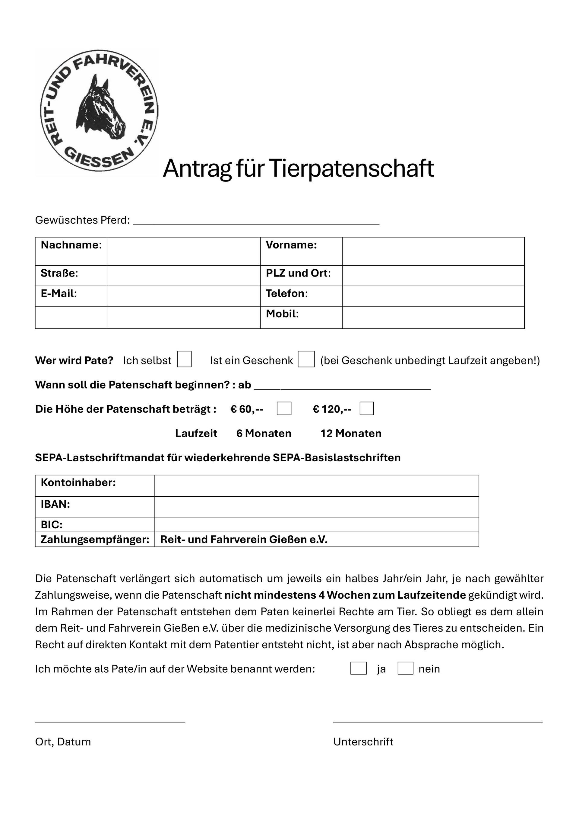 Antrag für eine Tierpatenschaft