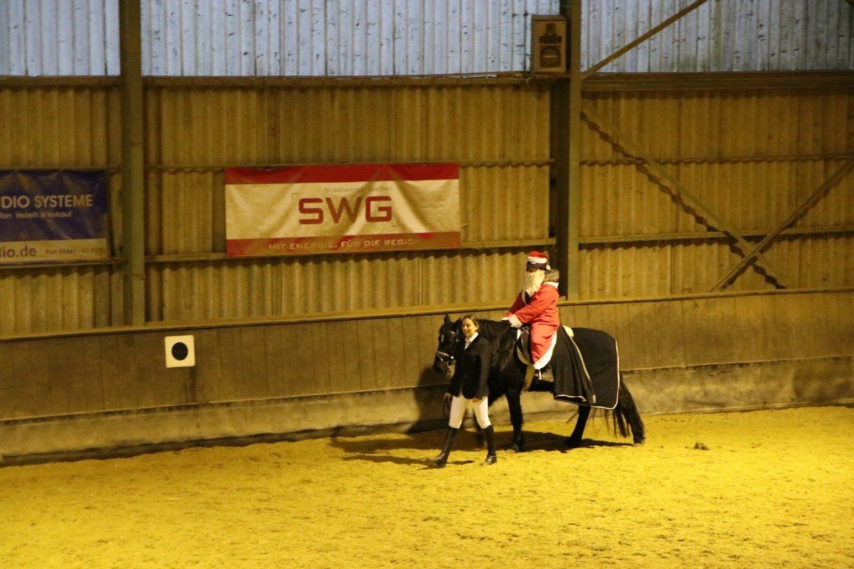 Am 15.12.2019 fand unsere diesjährige Weihnachtsfeier statt. Wir freuen uns, dass der Einladung so viele Mitglieder und Freunde des Vereins gefolgt sind. Zu Beginn gab es in der Halle einige tolle Darbietungen. So konnten unsere Mitglieder ihr Können bei einer Quadrille beweisen und begeisterten die Zuschauer mit tollen Hufschlagformationen. Anschließend überzeugten Ronja und Kiana das Publikum von ihren Fähigkeiten im Freispringen und zu guter Letzt schaute auch noch der Weihnachtsmann auf Polly vorbei, um den Kindern ein Geschenk zu überreichen und eine Freude zu machen. Im Anschluss waren alle herzlich eingeladen, bei allerlei Leckereien wie Glühwein und Punsch, Plätzchen und Kuchen, Wildgulasch und Chili con carne, hessischen Tapas und vielen mehr, den Abend und das Vereinsajahr beim gemütlichen Beisammensein ausklingen zu lassen. Eine tolle Gelegenheit um ins Gespräch zu kommen, die Kameradschaftlichkeit zu pflegen und auch abseits von Verpflichtungen und Veranstaltungen die Zeit zu genießen. Wir möchten uns bei allen recht herzlich bedanken, die zum Gelingen der Feier vor und hinter den Kulissen beigetragen haben und wünschen allen schöne Weihnachten, erholsame Feiertage und einen guten Start ins neue Jahr!